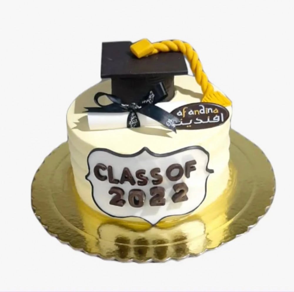 كيكة التخرج من حلويات افندينا ليست مجرد حلوى، بل هي عمل فني. صممت خصيصاً لتعكس فرحة التخرج وتتناسب مع أجواء الاحتفال. يتم تزيين الكيكة بعناية فائقة، حيث تشمل قبعات التخرج، الشهادات المصغرة، وزخارف تزينها لتبهر الحضور وتترك انطباعاً لا يُنسى.