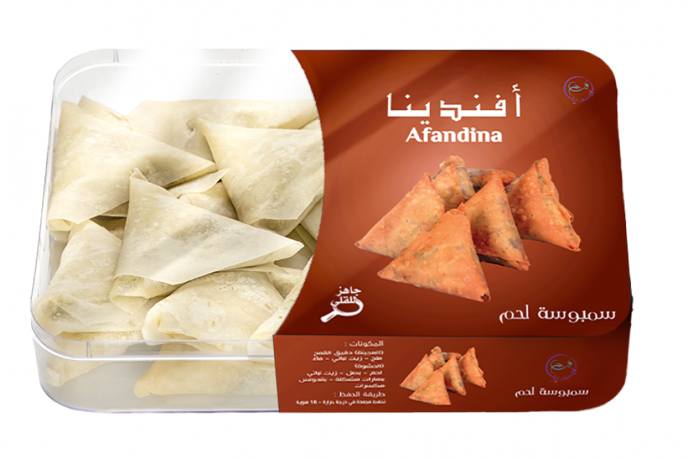 العلبة وزنها نصف كيلو تقريبا ( 20 حبة سمبوسة تقريبا)